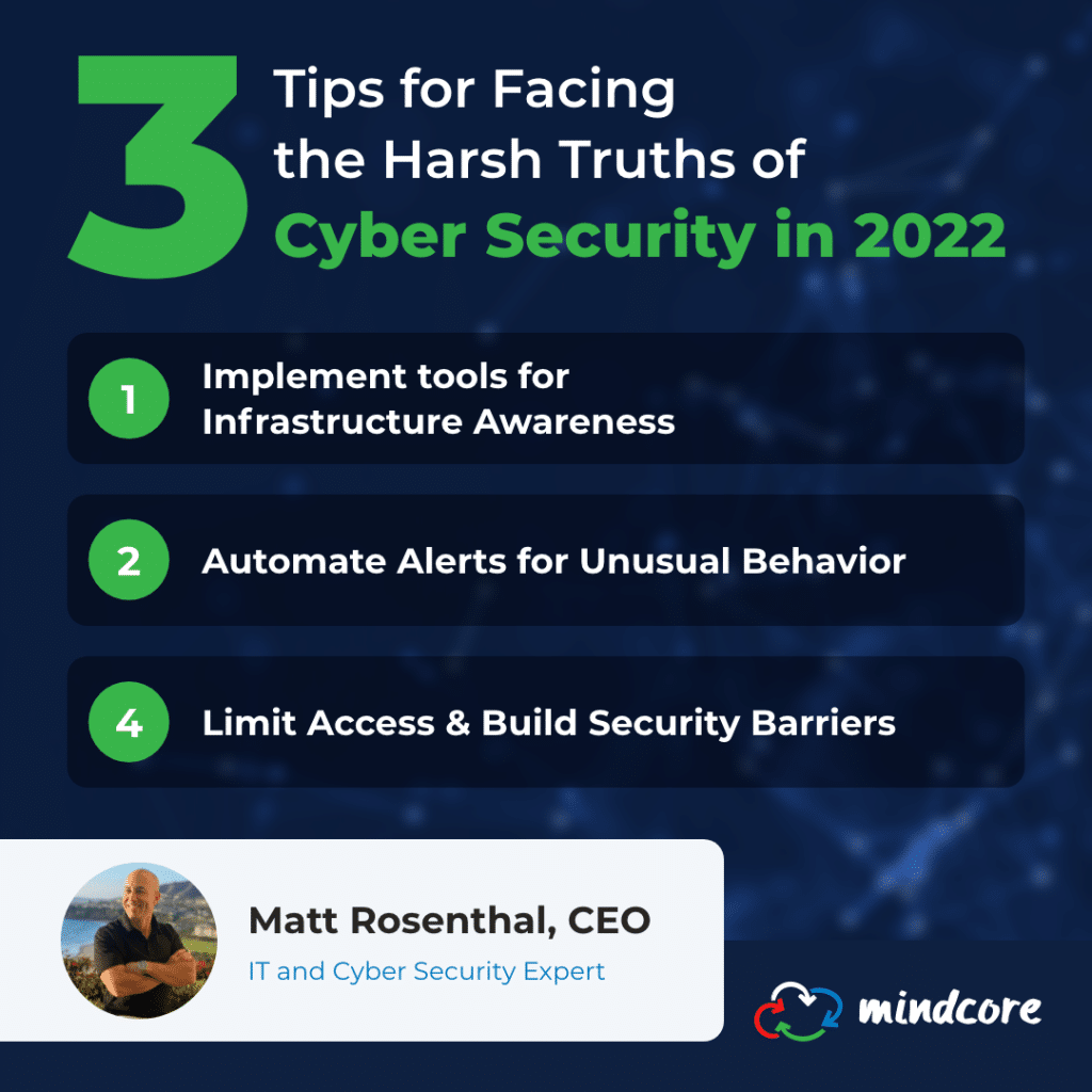 These cybercriminals may know your systems and infrastructure better than anyone else. Once they have gained access, their strategy is to remain hidden until they learn as much as they can and then strike at the optimal time. Fortunately, some practices and technologies can help you detect threats before they inflict significant damage on your business. Below we have outlined three steps your organization should take immediately to reduce cyber attack fallout in 2022.