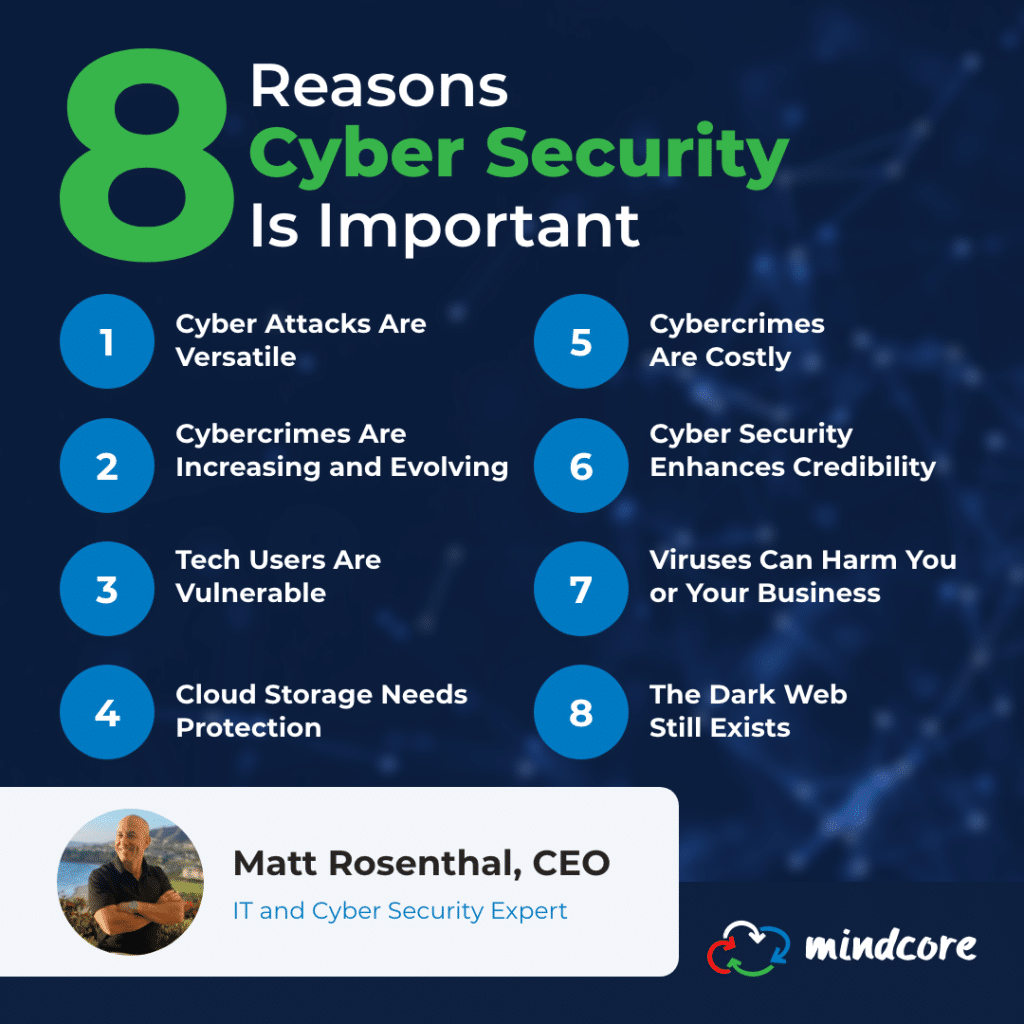 Almost every organization relies on technology to support its daily operations, but as technology advances, so does the risk for cyber attacks. Cyber security can help defend your IT system from unwanted attacks and threats, protecting your company’s most valuable assets. Here are eight reasons why cyber security is important for your business.