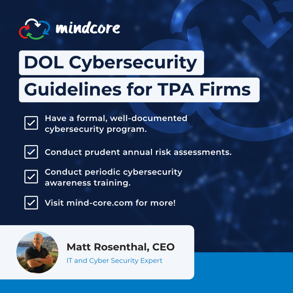So what does this mean for TPAs? As a TPA, you are a fiduciary for the plans you administer. As such, you must act with a high standard of care to the plan participants and your plan sponsor client. Following these guidelines ensures that all participant data you manage, along with your systems, are well-protected 24/7.