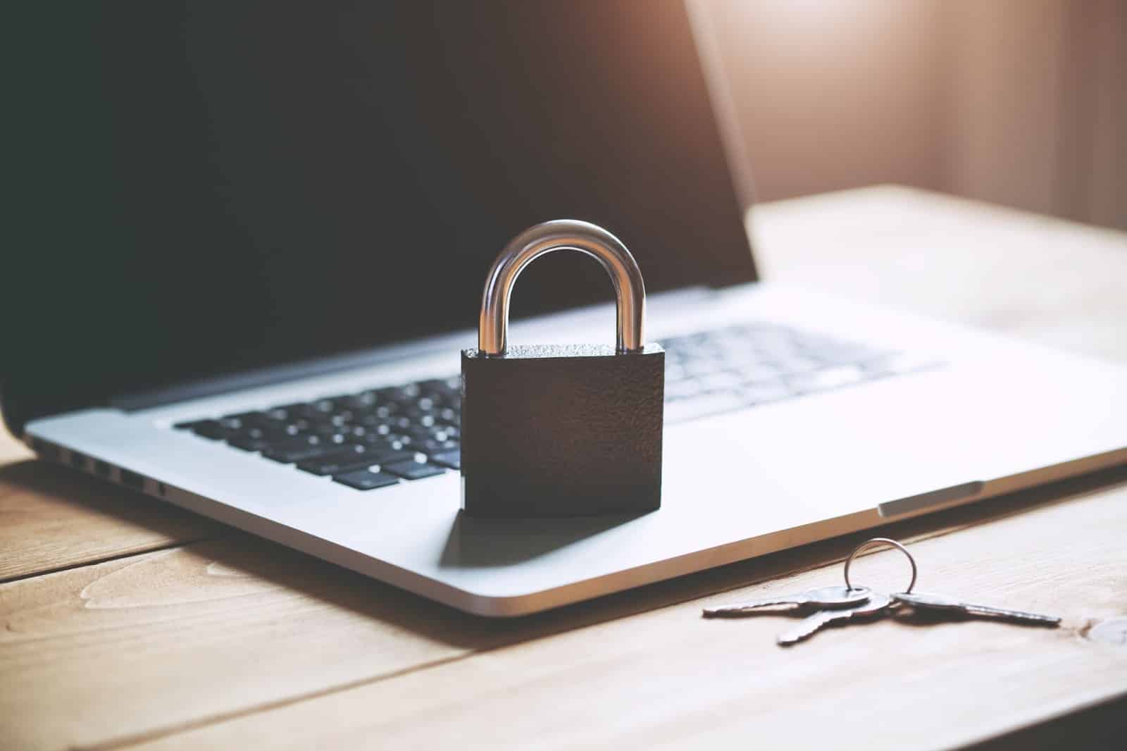 A laptop with Padlock and keys