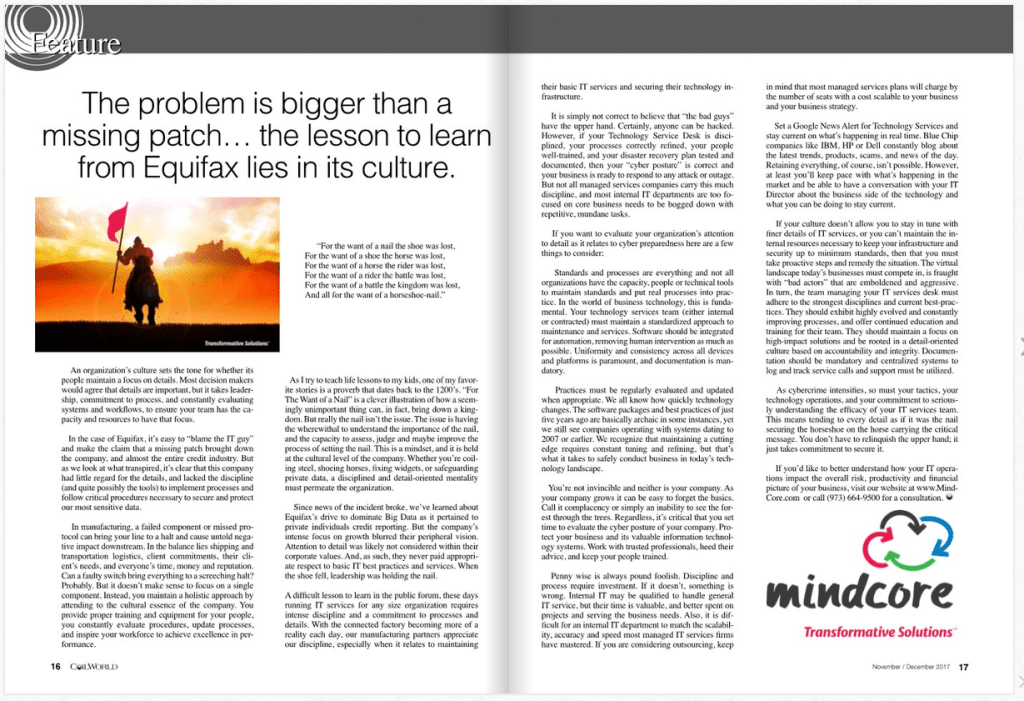 We’re proud to announce our article on Cybersecurity and Corporate Culture was featured in this month’s issue of Coil World. A publication dedicated to the coil coating and processing industry, the article is certainly appropriate for any business. Click the image & give it a read!